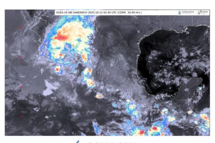El centro de Raymond está en tierra, sobre Los Cabos en Baja California Sur, como ciclón post-tropical